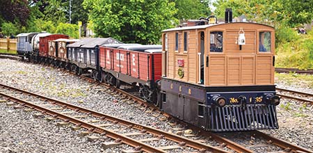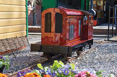 ‘Alice’ is a 10 ¼in. gauge model of the small 2ft gauge Bagnall locomotives supplied to many quarries, factories and construction companies in the early 20th century. She is built to a scale of 5 inches to the foot, producing a very powerful locomotive of just under half full size.